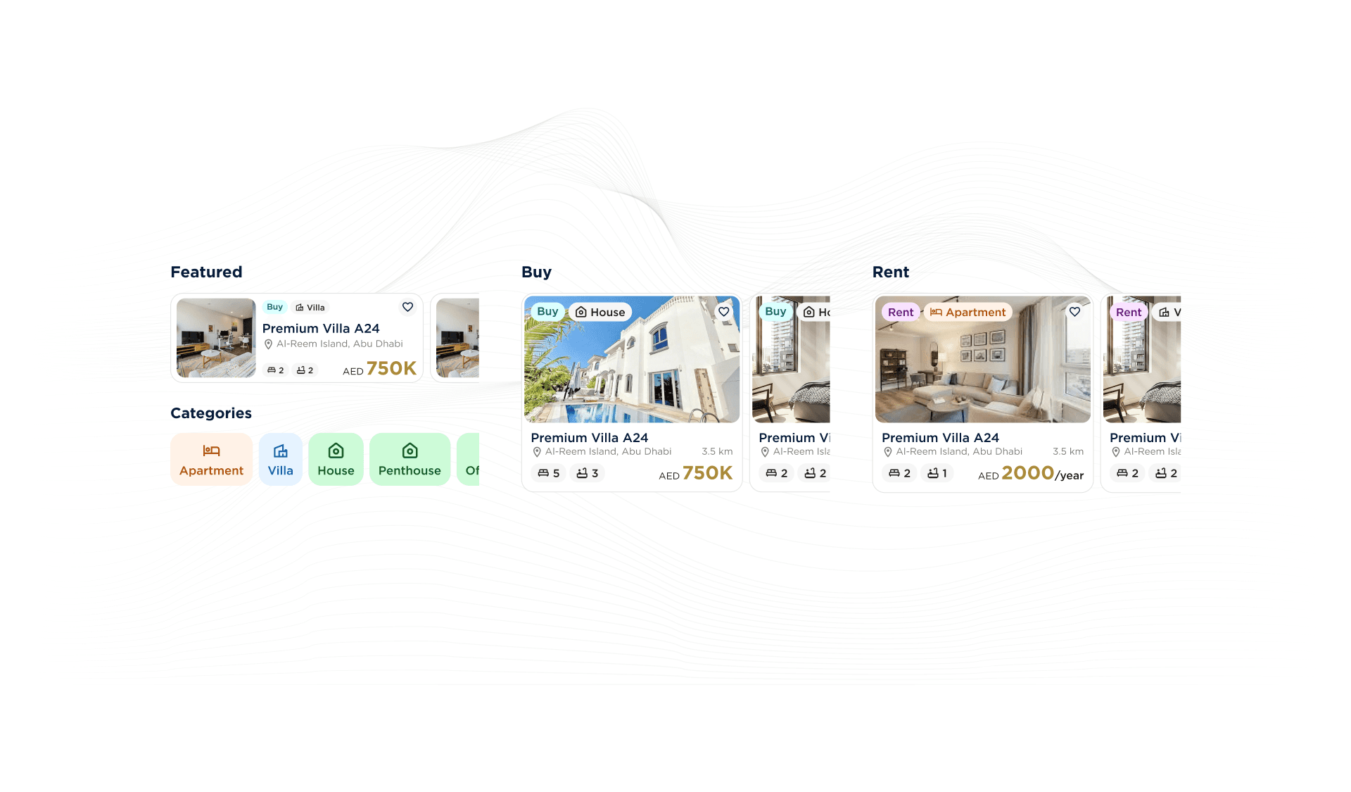 Reduced development costs by 40% through backend consolidation while delivering superior mobile experience. Transformed basic app into property-first platform that prioritized search and rental workflows, aligning mobile experience with actual user needs in UAE real estate market.